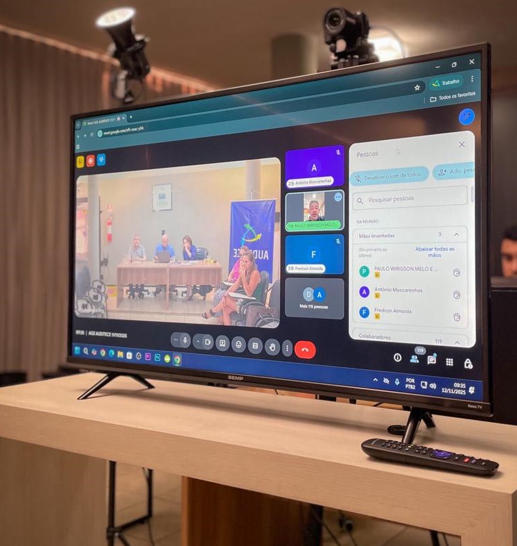 A Auditece realizou, nesta quarta-feira (12/11), a 10ª Assembleia Geral Extraordinária de 2025, em formato híbrido, com participação presencial no Auditório da UFFEC e virtual por meio do Google Meet e sistema de votação.