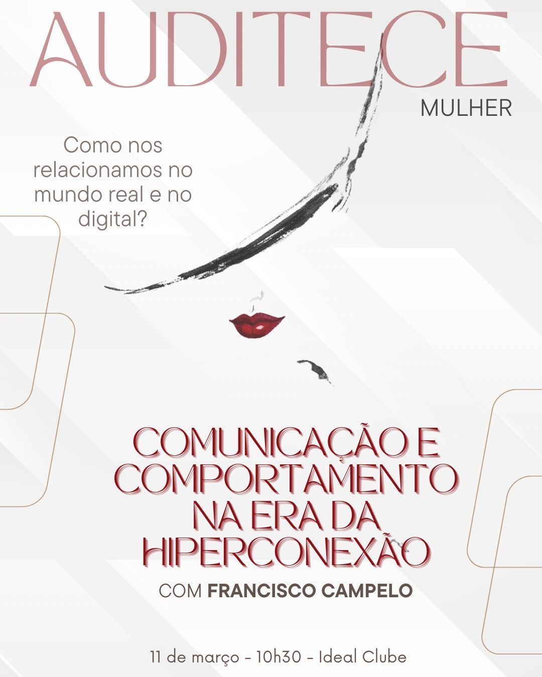 Nesta edição, a entidade recebe o jornalista Francisco Campelo para conduzir um talk show com as associadas. Durante a conversa, serão abordadas questões relacionadas à comunicação, às formas de interação na sociedade contemporânea e aos desafios de comportamento em um contexto cada vez mais conectado.
