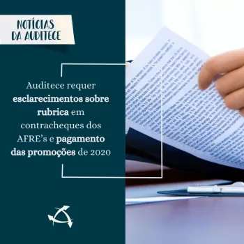 Auditece requer esclarecimentos sobre rubrica em contracheques dos AFRE’s e pagamento das promoções de 2020