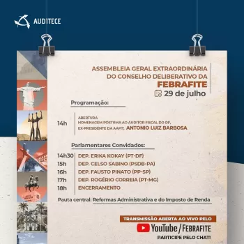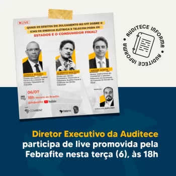 O Diretor Executivo da Auditece, Juracy Soares, participa, nesta terça (6), às 18h, de live promovida pela Febrafite…